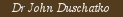 Dr. John Duschatko is a mechanical engineer turned biomechanical engineer! After contributing a decade of work on the International Space Station, Dr. Duschatko made the transition to serving others through the art of chiropractic neurology. He graduated from Parker College of Chiropractic at the top of his class. Dr. Duschatko has become very involved with brain injury advocacy and rehabilitation. He was on the Board of Directors of the Brain Injury Resource and Information Network of North Texas, and has presented at the Brain Injury Association of Texas' State Conference on the subject of brain injury rehabilitation. He was my doctor and gave me support and encouragement after I sustained a TBI.
